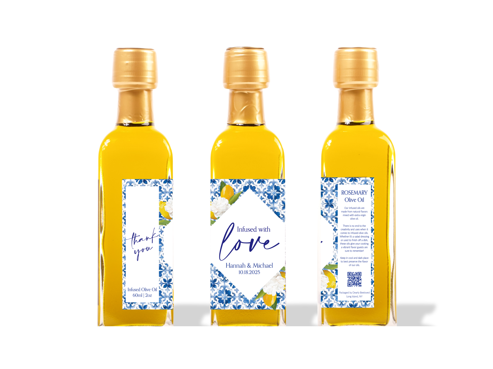 Give your guests a taste of elegance with our Gourmet Infused Olive Oil Party Favors. Each beautifully packaged glass bottle is filled with premium, cold-pressed olive oil, delicately infused with natural flavors for a truly unforgettable flavor experience.