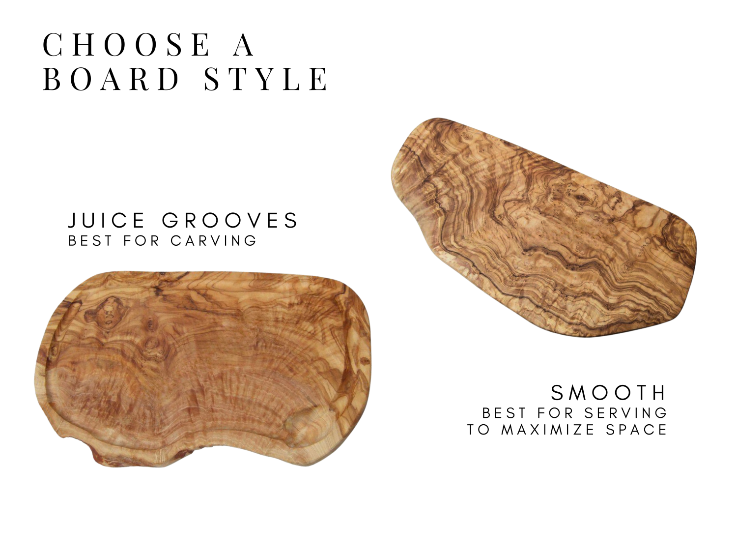 Boards come with or without a juice groove to catch spillage from carved fruits and meat.