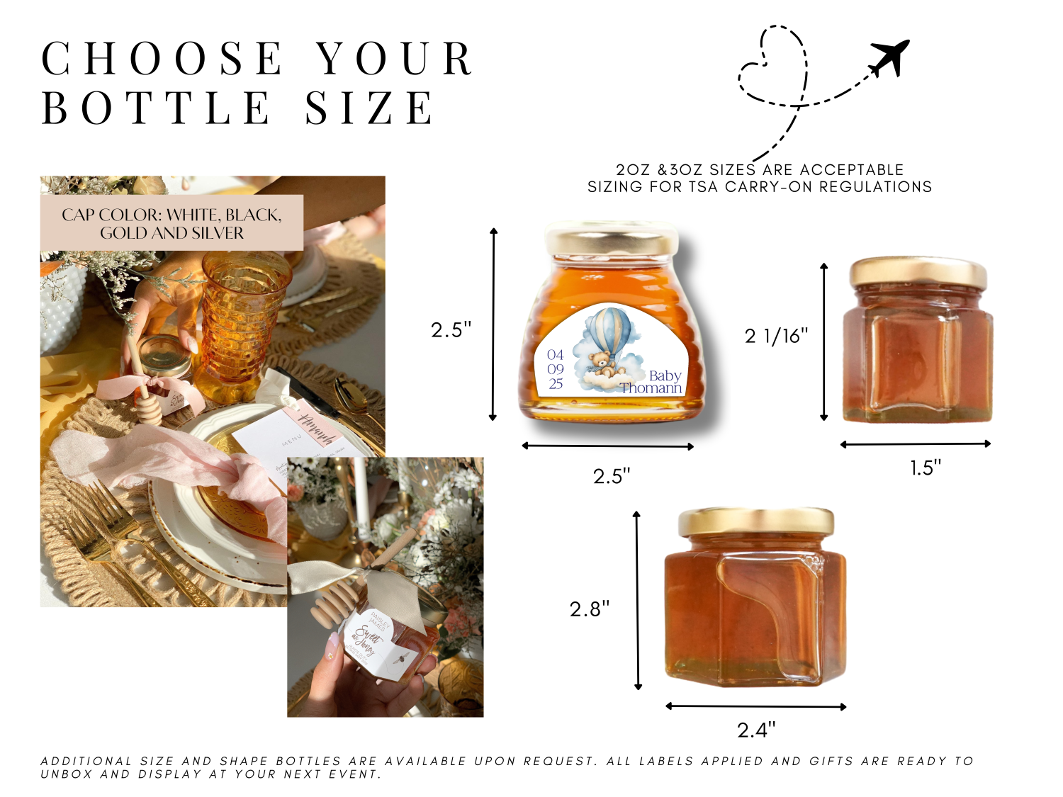 Sweeten your special occasion with the natural goodness of our Pure Honey Party Favors. Each charming glass jar is filled with premium, smooth, golden clover honey.
