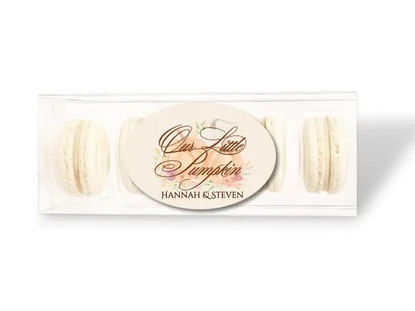Treat your guests to a taste of elegance with our elegant macarons—a perfect party favor that combines sophisticated flavor and style. These delicate, hand-crafted macarons come in a set of 2 or 5, each one carefully made with the finest ingredients and filled with rich, delectable fillings. Presented in a beautifully designed gift box with a personalized label, these macarons add a sweet and memorable touch to your celebration.
