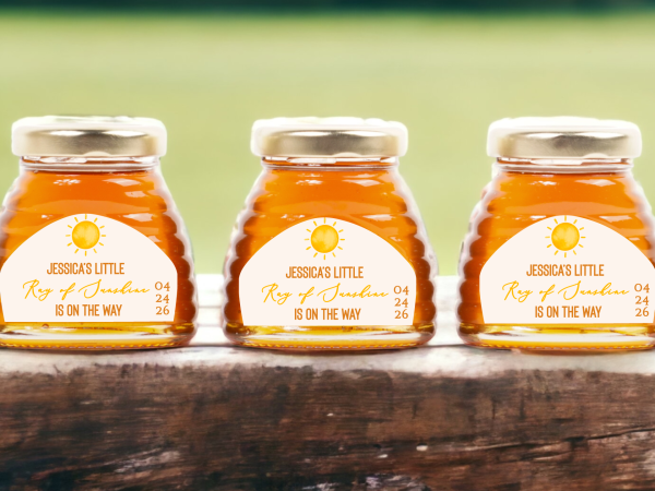 Sweeten your special occasion with the natural goodness of our Pure Honey Party Favors. Each charming glass jar is filled with premium, smooth, golden clover honey.