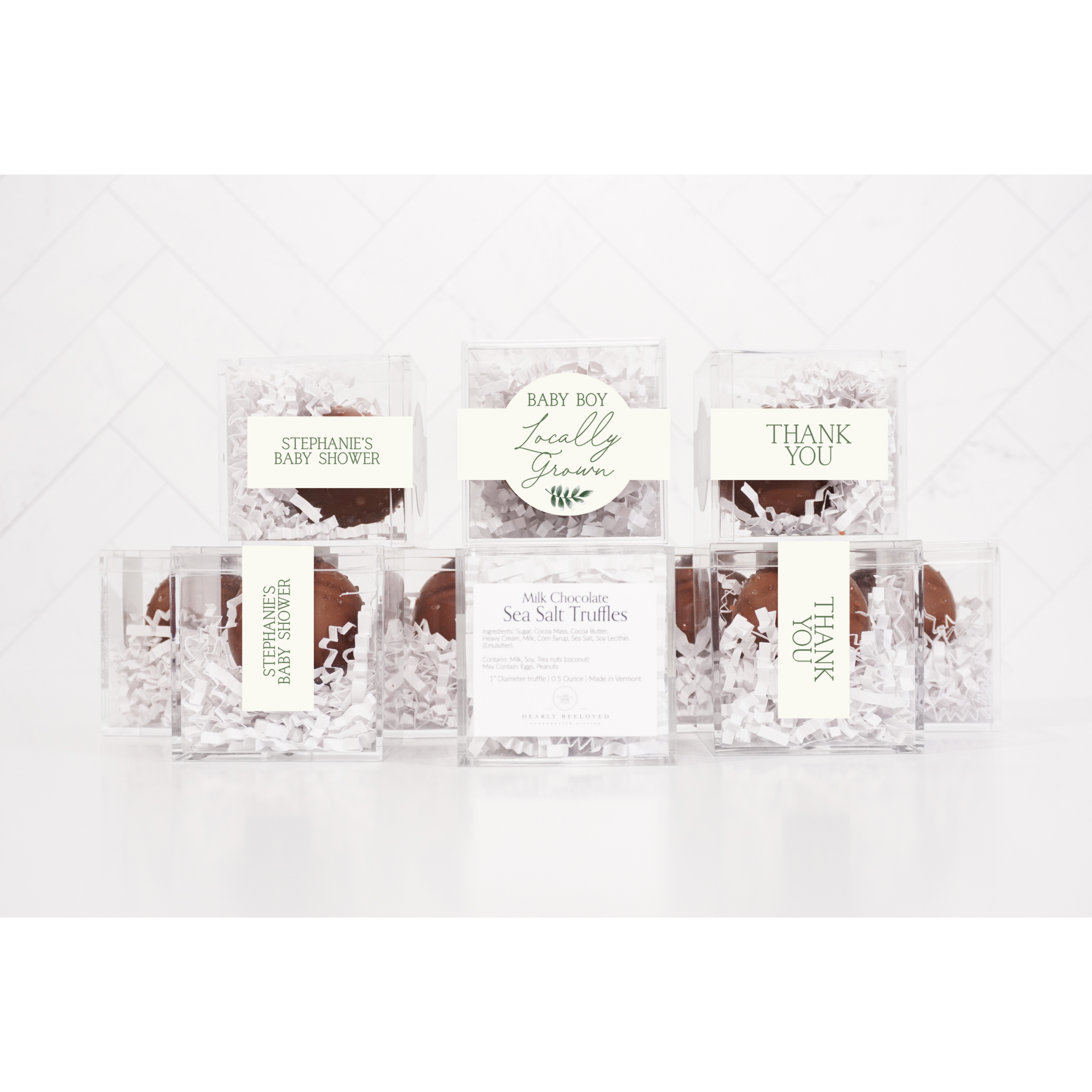 Indulge your guests with the ultimate sweet treat—our Chocolate Truffle Party Favors! Each 2″ clear acrylic cube is filled with rich, velvety chocolate truffles that melt in your mouth, offering a luxurious bite of bliss.
