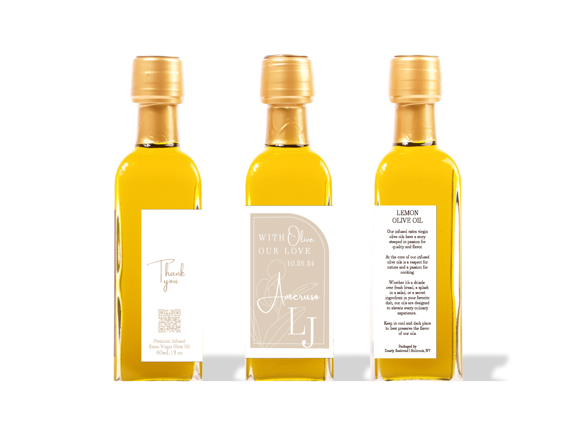 Give your guests a taste of elegance with our Gourmet Infused Olive Oil Party Favors. Each beautifully packaged glass bottle is filled with premium, cold-pressed olive oil, delicately infused with natural flavors for a truly unforgettable flavor experience.