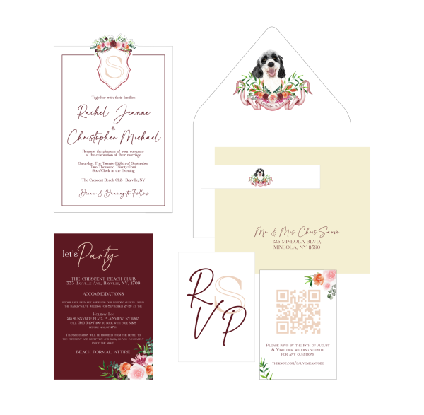 This semi-custom suite maintains the original artwork, fonts, and overall layout exactly as shown in the listing. The design itself is not altered; instead, your personal details—such as names, dates, venue information, and any applicable event wording—will be seamlessly substituted into the existing template.