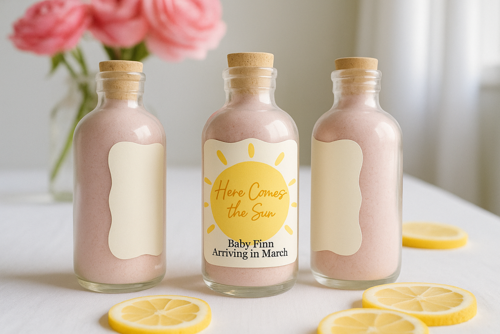 Give your guests a refreshing, flavorful treat with these beautifully packaged lemonade mix bottles—an easy and thoughtful way to say Sip Sip Hooray!