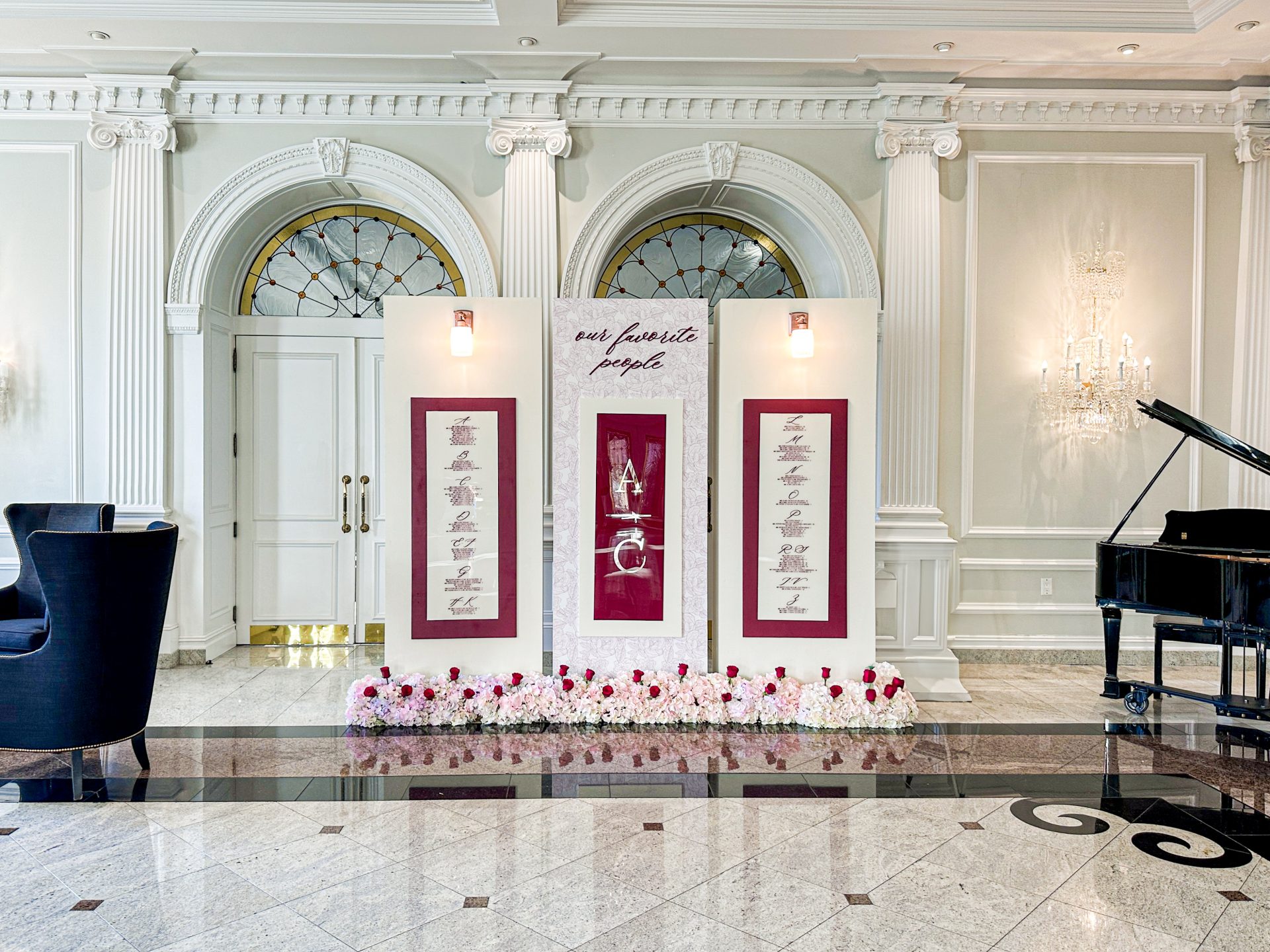 Our fully curated wall displays offer a white glove approach from our team. The perfect marriage of custom signage and rental decor, wall displays have long been a focal point for luxury events.