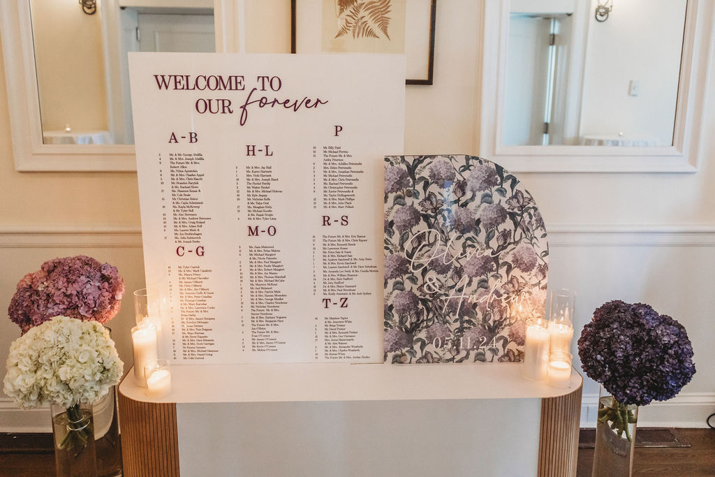 Our bespoke signage options are designed to make a statement. Whether it be a welcome sign to greet your guests or a seating chart to guide them, we provide fully curated pieces to complement your event.