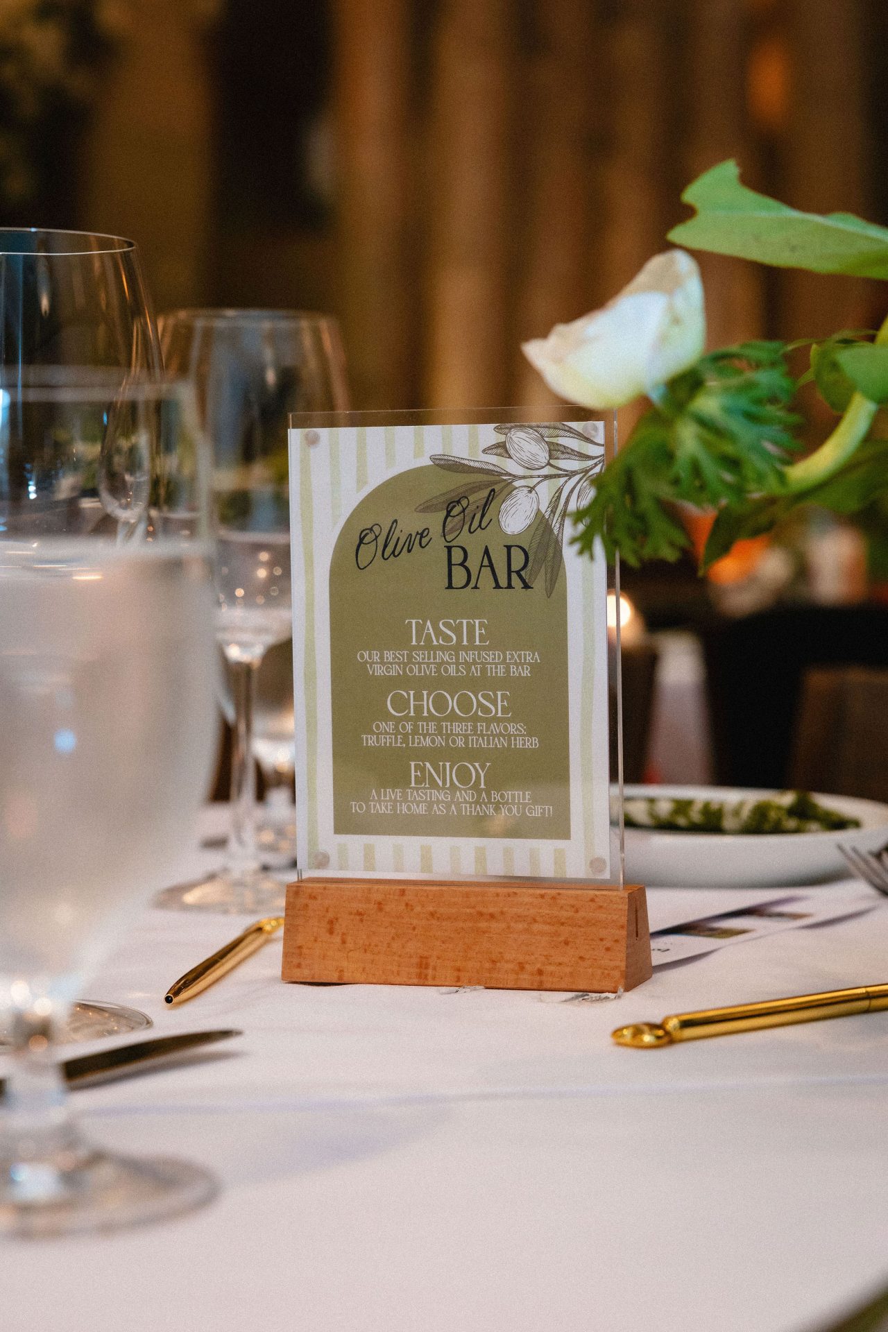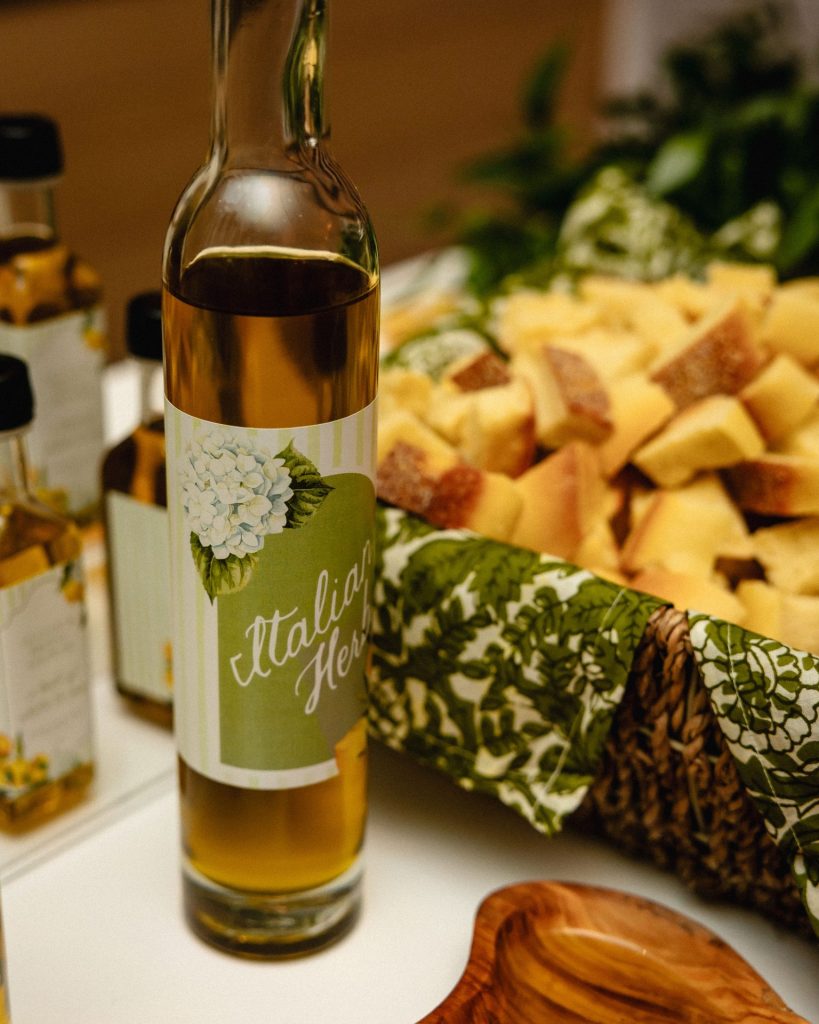 Our infused olive oil bar offers a beautifully interactive experience for guests to enjoy. Guests are invited to taste three distinct flavors of our premium infused extra virgin olive oils, served with fresh bread for dipping.