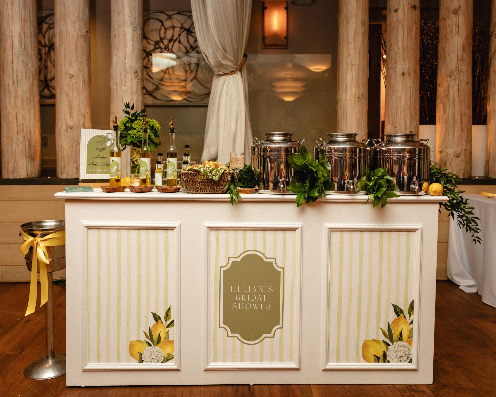 - Create an immersive experience with your branded bar, signage, bottle labels & ribbon color.
